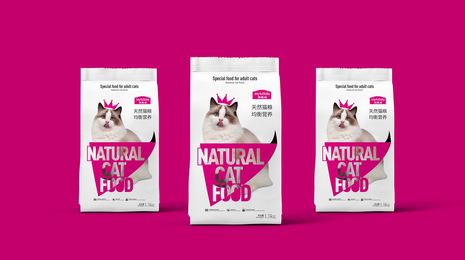同道為麥富迪天然貓糧對線上線下產(chǎn)品進(jìn)行有效的區(qū)隔,設(shè)計一款新的天然貓糧系列產(chǎn)品。通過簡約、有趣的、生動的表現(xiàn)形式來傳播產(chǎn)品的特點及屬性,也用具有鮮明的設(shè)計符號增強(qiáng)產(chǎn)品的傳播力及識別性。