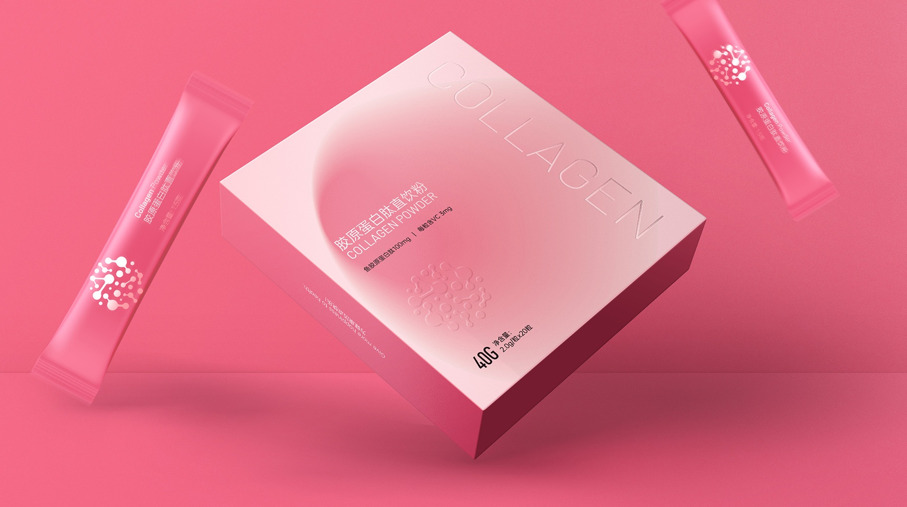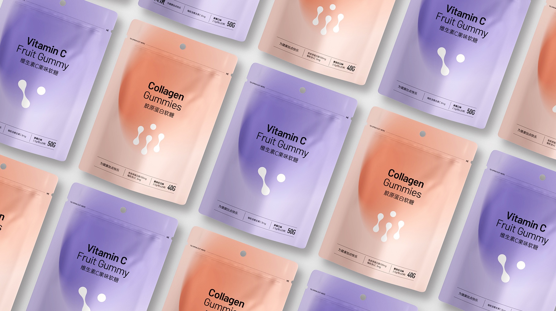 膠原蛋白肽直飲粉、膠原蛋白軟糖、維生素C果味軟糖,產品包裝設計