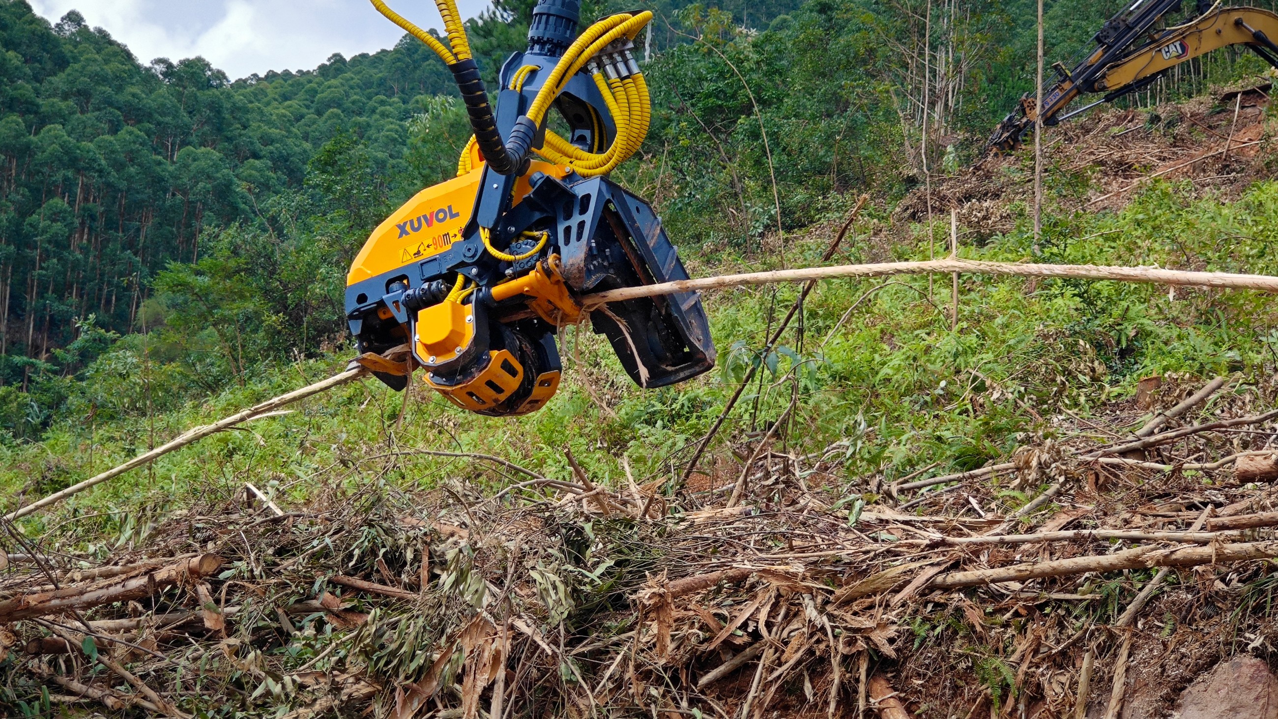 徐沃XVF-500E是一款具有剝樹皮功能的伐木機(jī),專為有木頭剝皮的需求的木頭直徑小于500mm林業(yè)采伐需求設(shè)計的。特殊的剝皮喂料輪在斜角上可進(jìn)行多切邊操作,從而產(chǎn)生一種螺旋式的樹干傳動并提供質(zhì)量最好、速度最快的剝皮作業(yè),在不進(jìn)行剝皮作業(yè)時,可以更換常規(guī)喂料輪進(jìn)行采伐作業(yè)。匹配13-15T挖掘機(jī)。